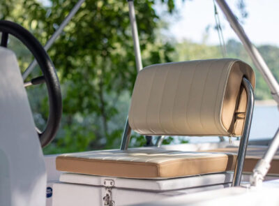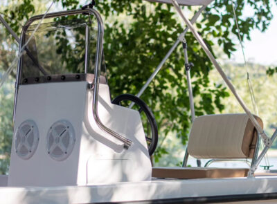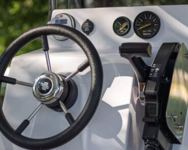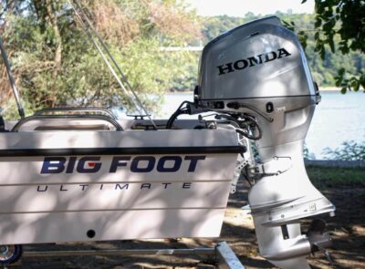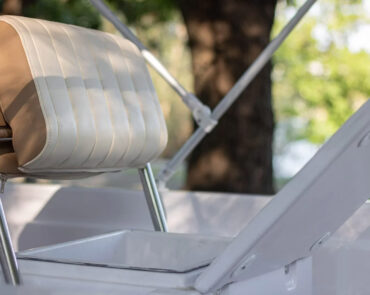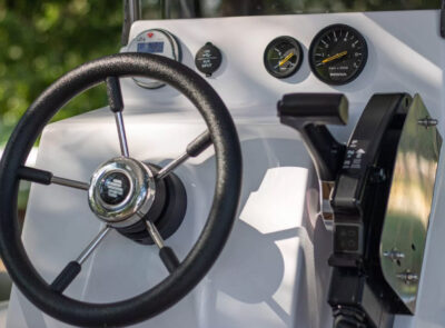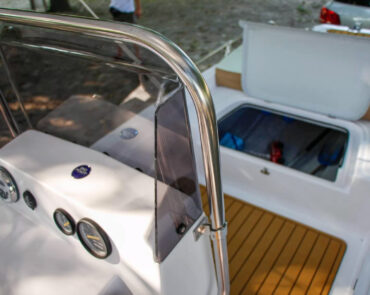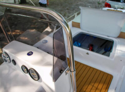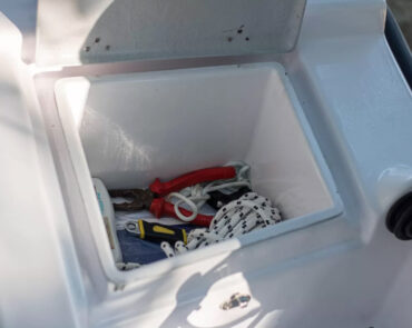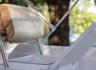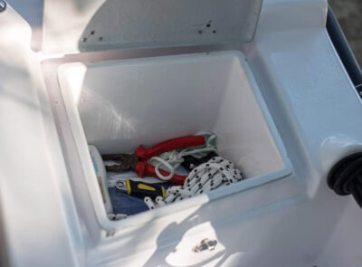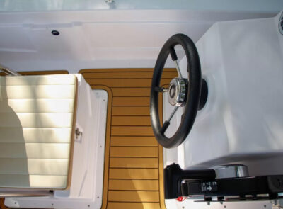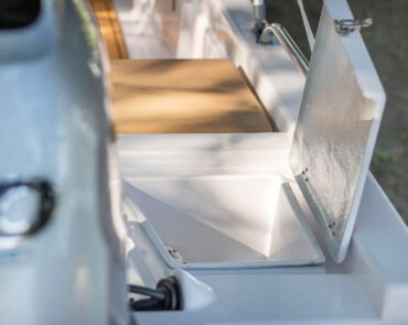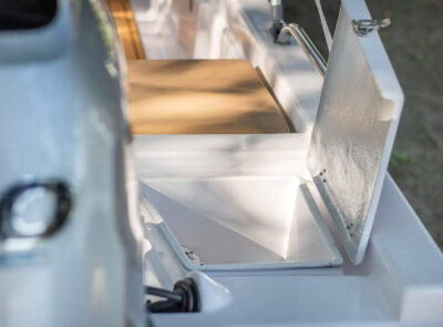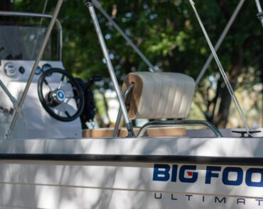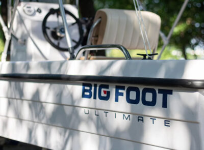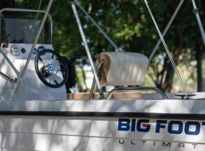 The Big Foot Ultimate includes wide storage compartments in the bow and stern, as well as a separate anchor locker. The vessel can be operated using a tiller handle or with a steering console installed on the control panel as optional equipment.