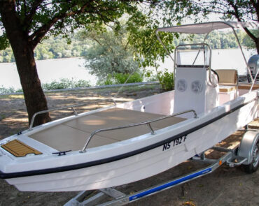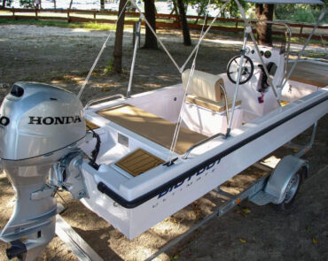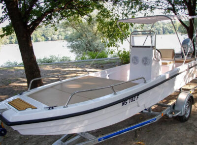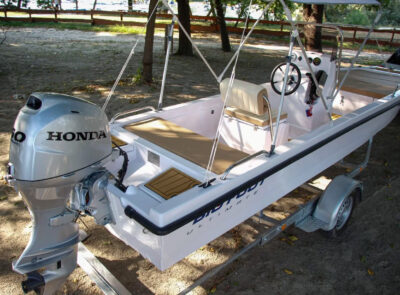 The boat is manufactured from durable polyester and features a slight V-shaped hull that provides stability and smooth handling on the water. The transom is designed for long-shaft outboard engines but can also be adapted for short-shaft motors.