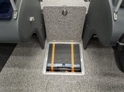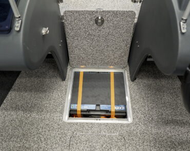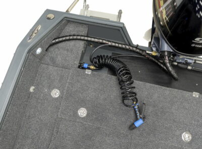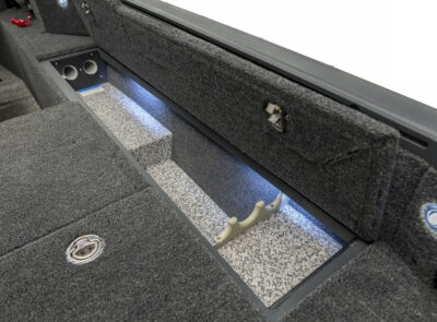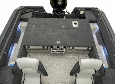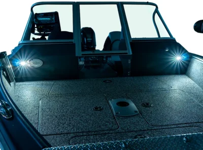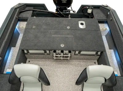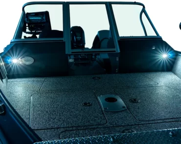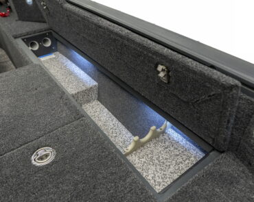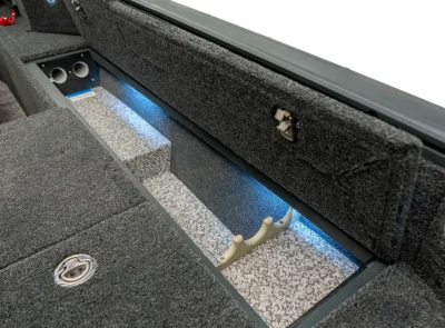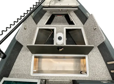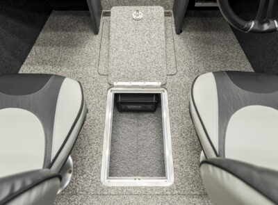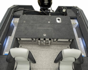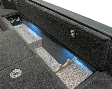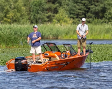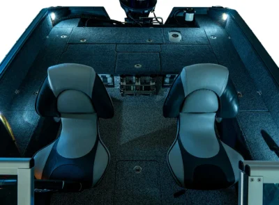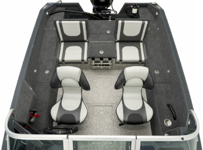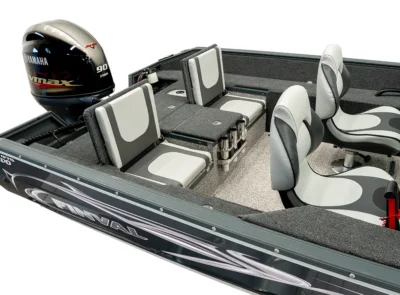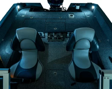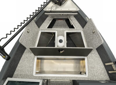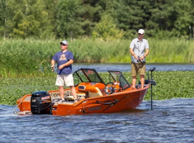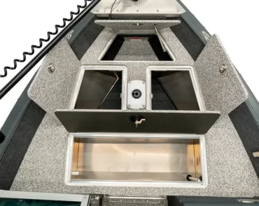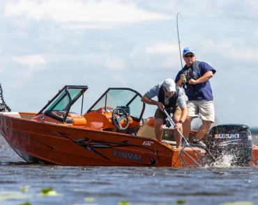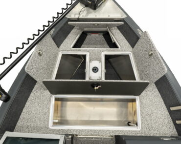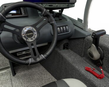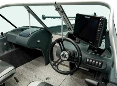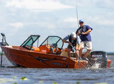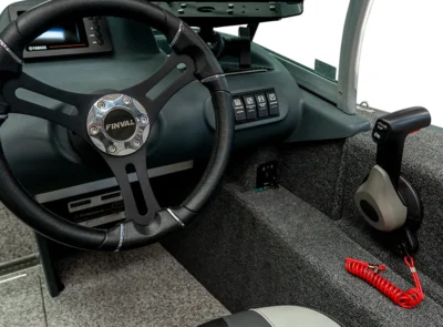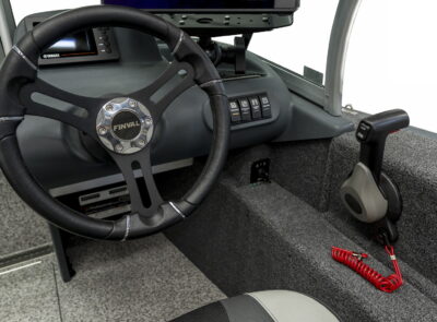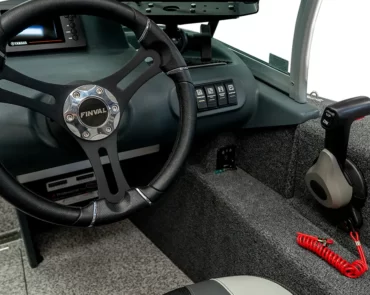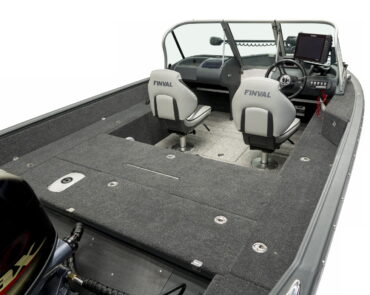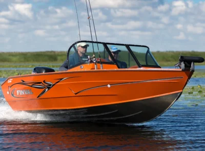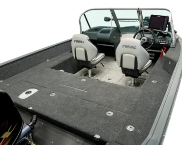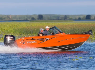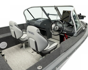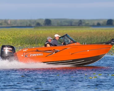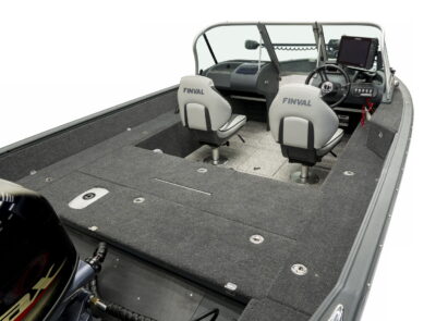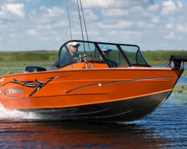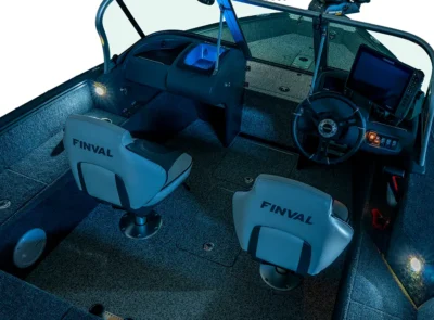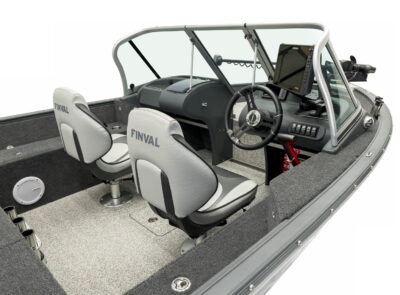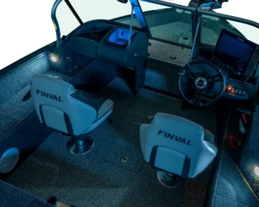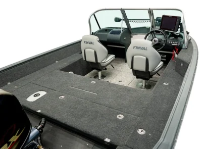 Finval 475 Evo DC is the widest among boats up to 5 meters long. Its aft deck is 192 cm wide. This is enough for two people to comfortably fish together, or just relax lying on it. The boat is also convenient for travel. A thoroughgoing windshield protects both front and rear passengers from the wind. Numerous lockers and shelves allow organizing the interior space so to not keep things in the cockpit. High Top canvas enclosure will help to hide from the sun in summer. If you fasten the side and back curtains to it, you will have reliable protection from rain and cold wind. One can choose the layout of the bow and stern decks. All these features make Finval 475 Evo DC one of the most popular boats in Europe.