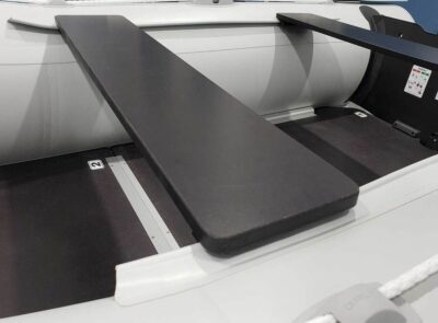 The flooring features laminated plywood floorboards and aluminum reinforcement beams, ensuring stability and ease of use. The design requires no maintenance and offers comfortable seating with a sliding installation system, allowing you to rearrange the cockpit space in seconds, whether on the water, deck, or davits!
