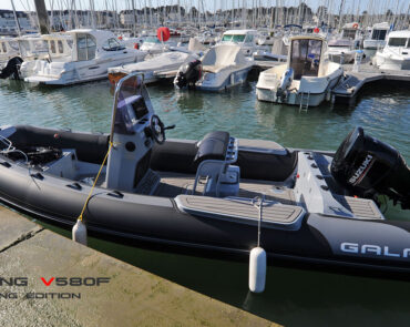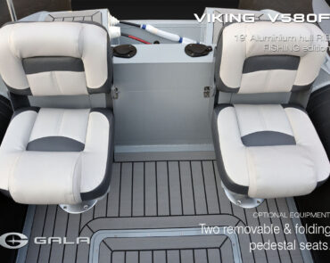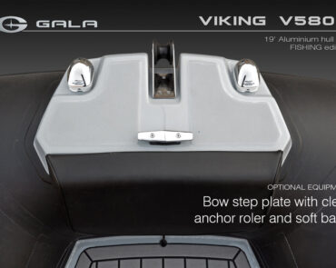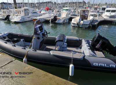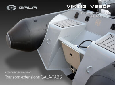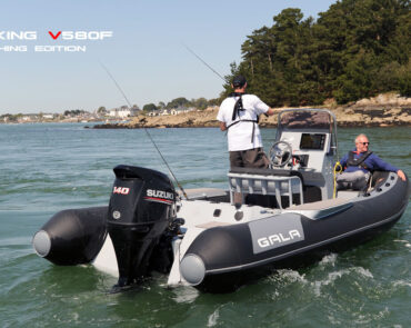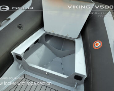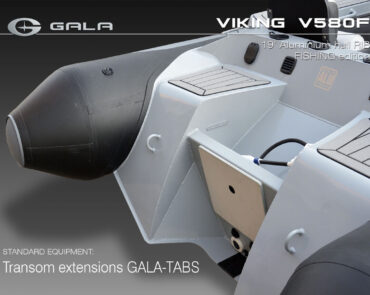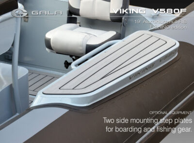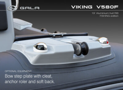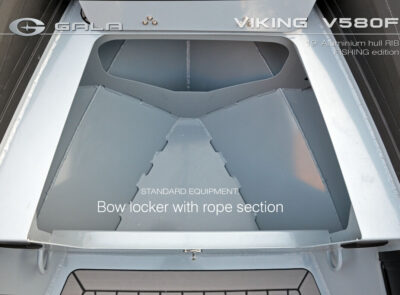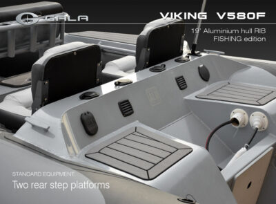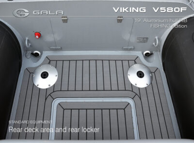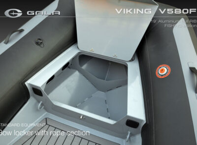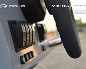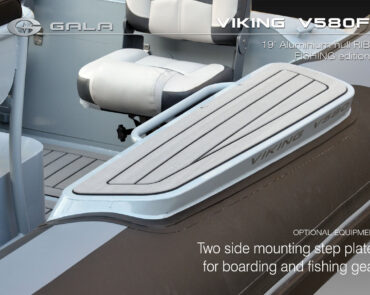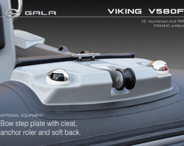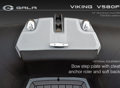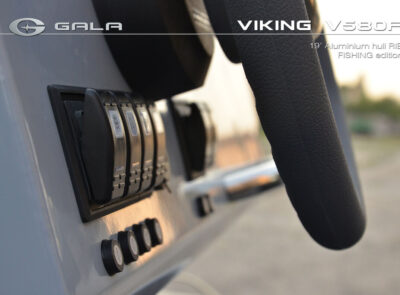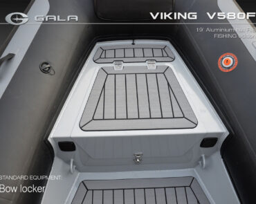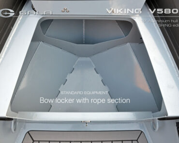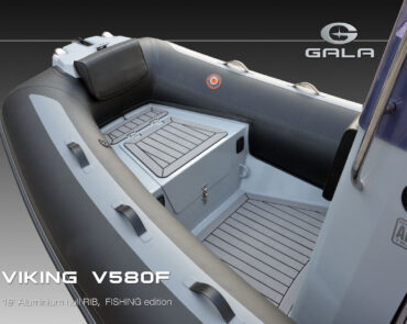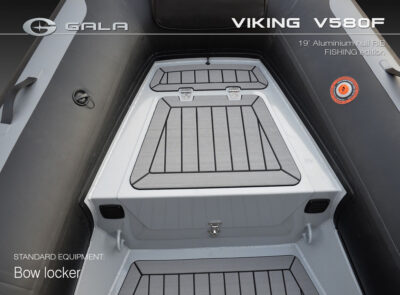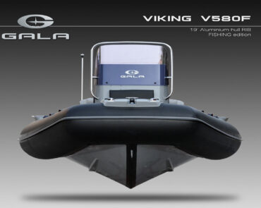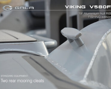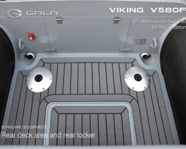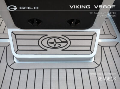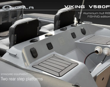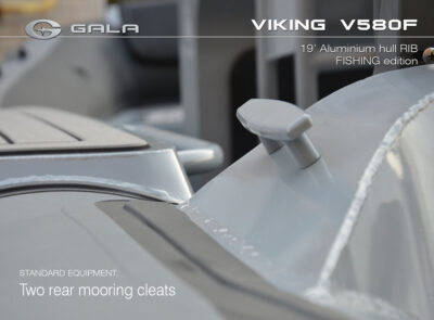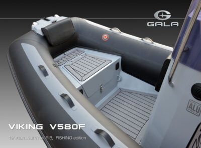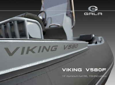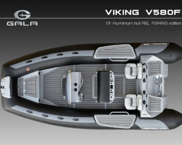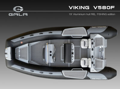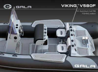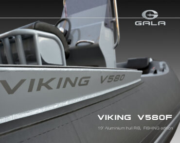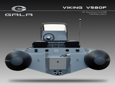 The V580F Fishing/Pro version, also 5.8 meters (19 feet) long, features a C-07 console, S-06 bolster seat, and extensive free space at the front and back. This design allows for a variety of options tailored for expert-level fishing and professional activities. Like all VIKING models, it boasts the superior rigidity of GALA-ALU-TECH welded aluminium hulls.