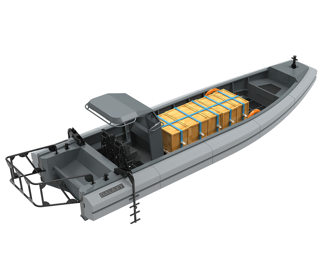 This model is ideal for offshore patrol, transport of personnel and equipment, rescue missions, and heavy duty marine work. Its size and layout support efficient performance under pressure.