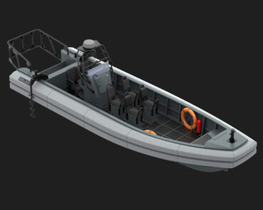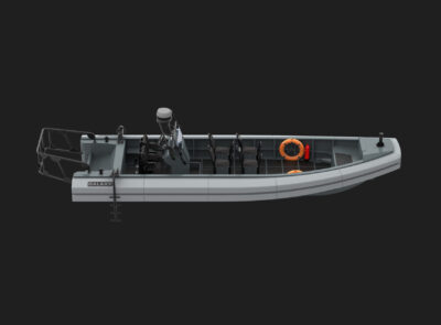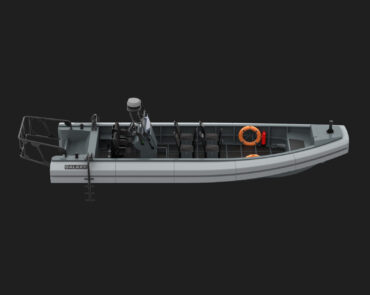 The welded aluminum hull with a reinforced D-collar system ensures strength and durability in rough conditions. The construction reduces maintenance and increases service life.