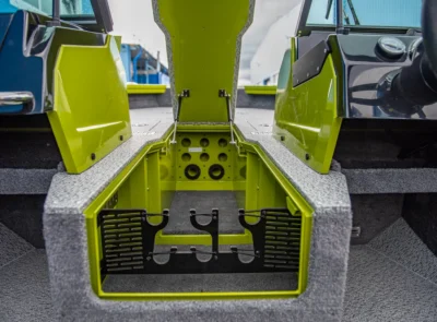 • Dry central locker for 6 spinning rods of up to 2.75 m length