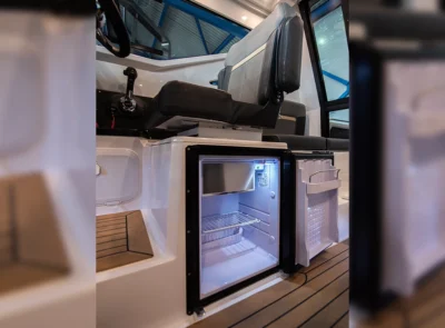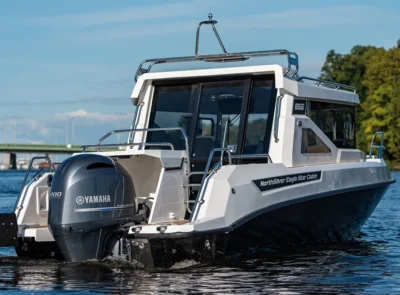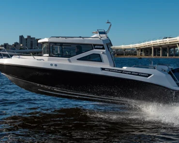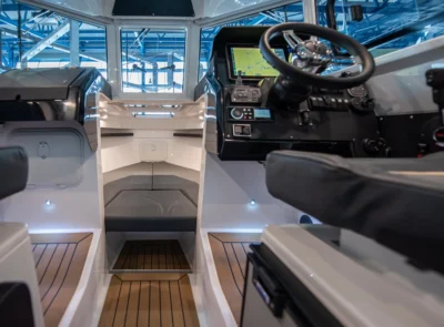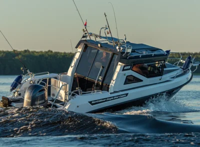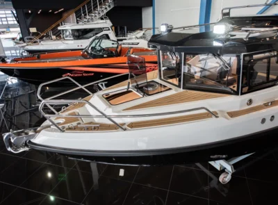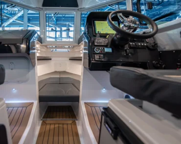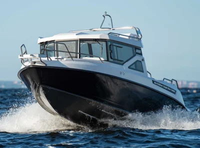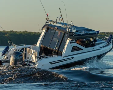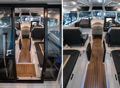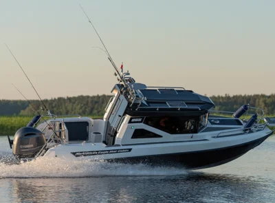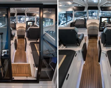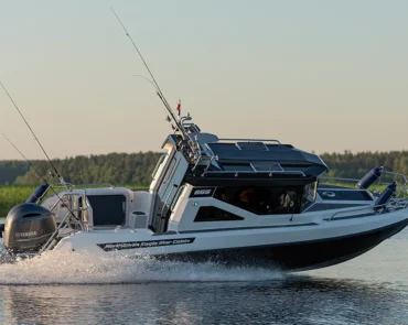 • Stainless steel rail on the roof with possibility for spinning rod holders and radar installation