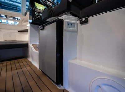 • Lewmar hatch above captain’s seat