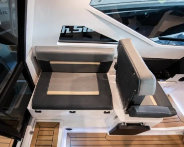 • Top of captain console with leather finish and place for a compass
