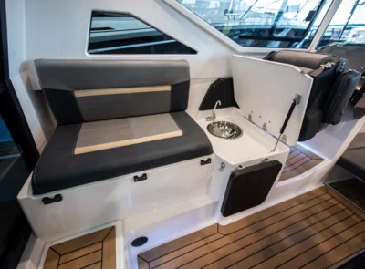 • Soft fold-back seats in aft cockpit