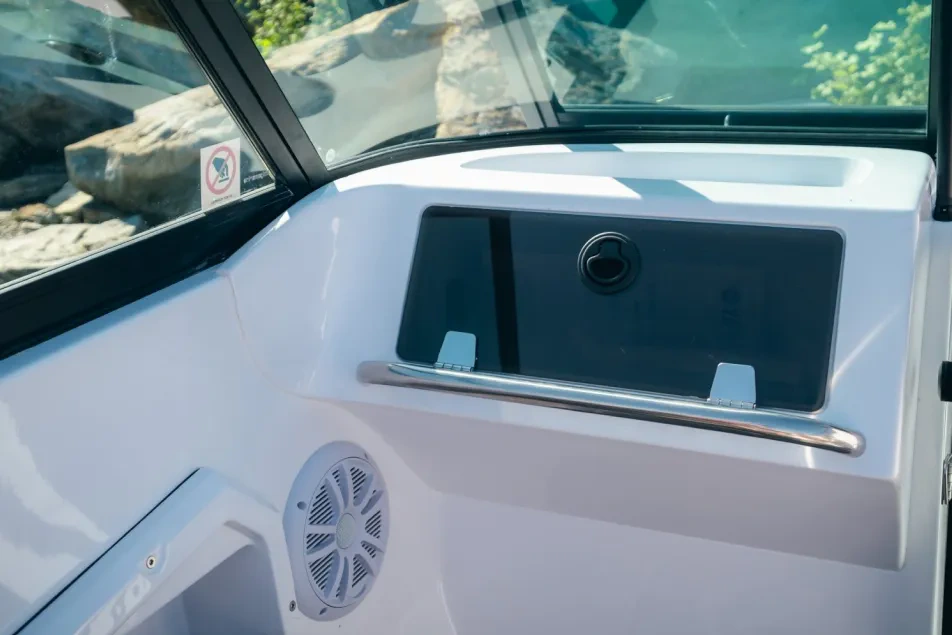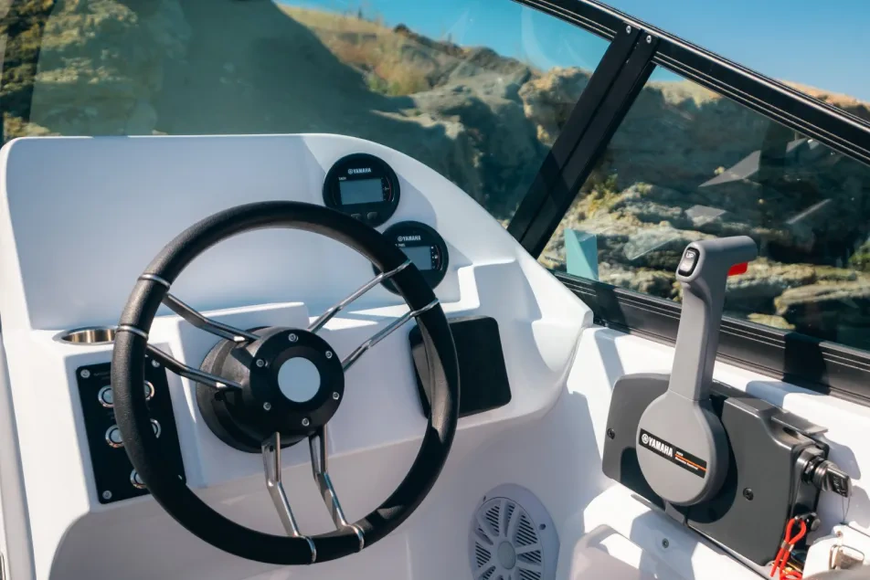 Get ready for some fun in the sun with the Reval Grade CG50 bowrider boat! This versatile vessel boasts the spaciousness and storage of a much larger boat, while still being easy to handle with its 80-hp engine. Take your family and friends out for a day on the water and enjoy ample room in the cockpit and generous storage space for all your gear. With its reliability and capability, the Reval Grade CG50 is the perfect partner for your next family trip or weekend adventure.
