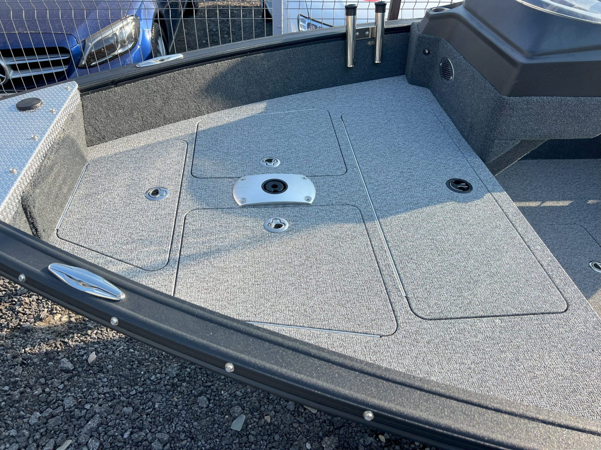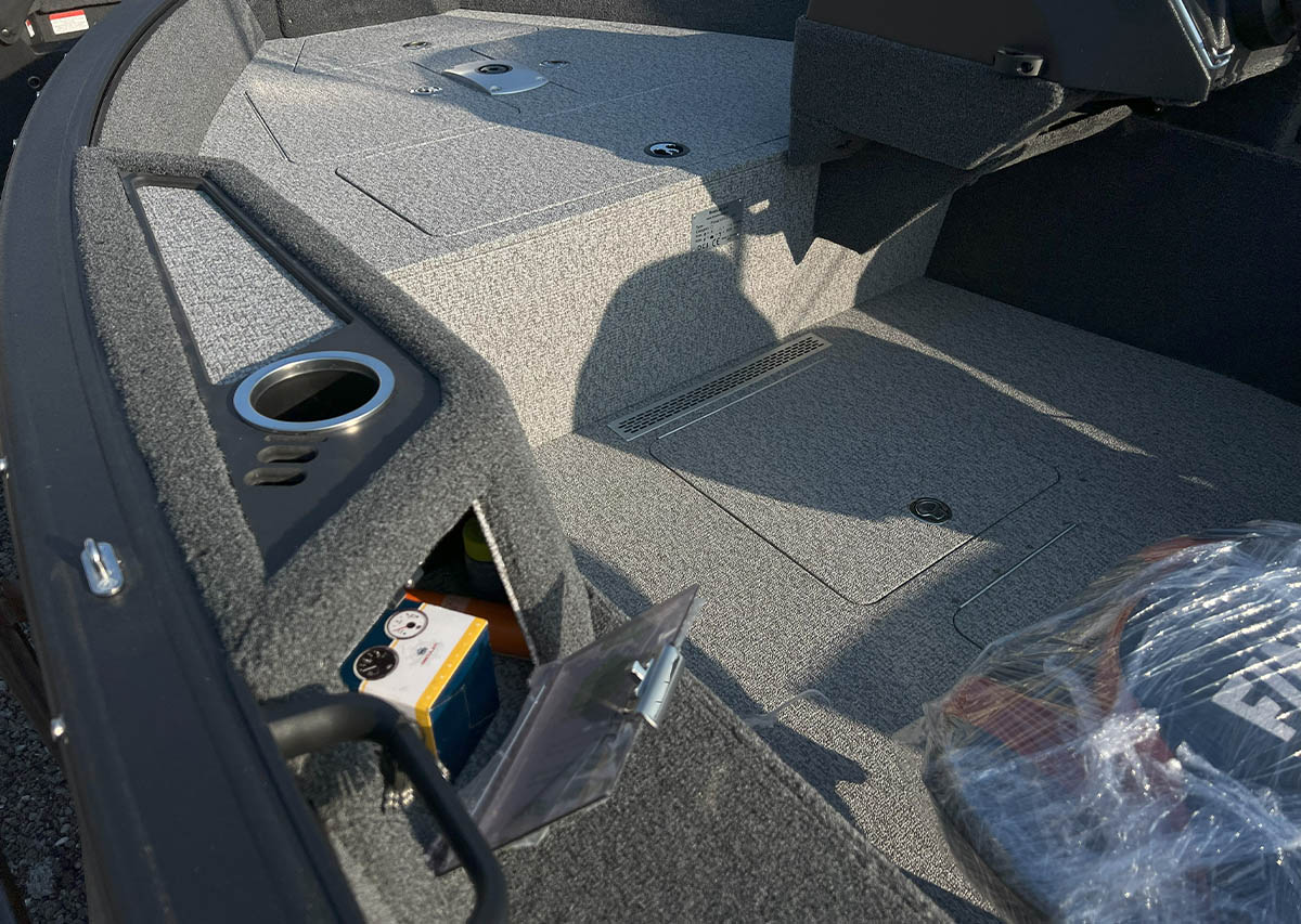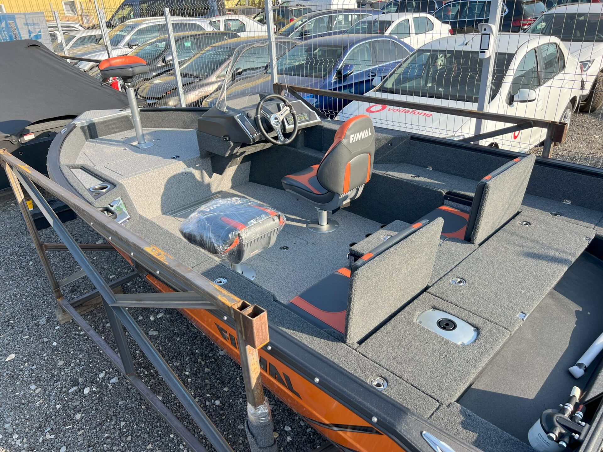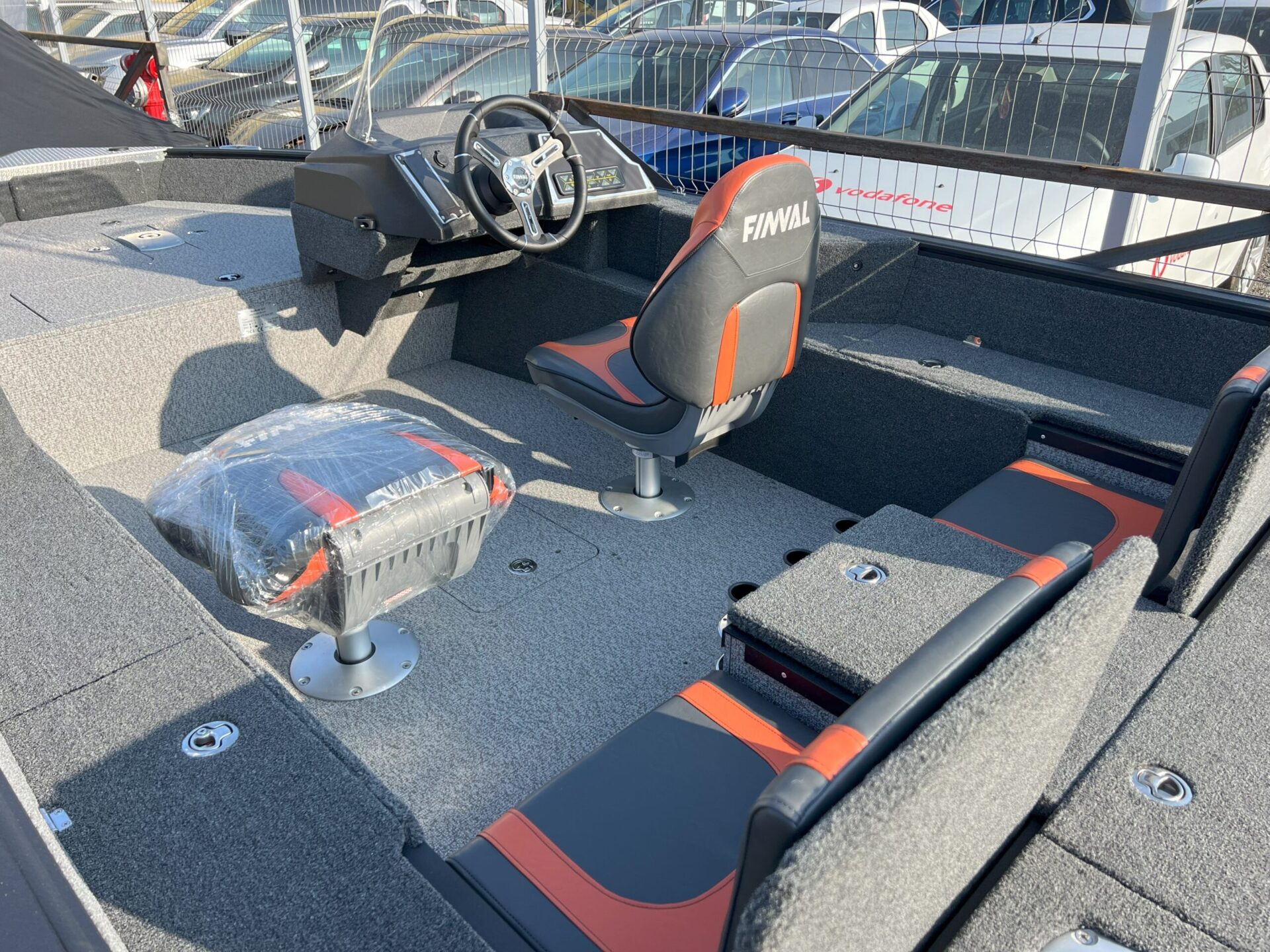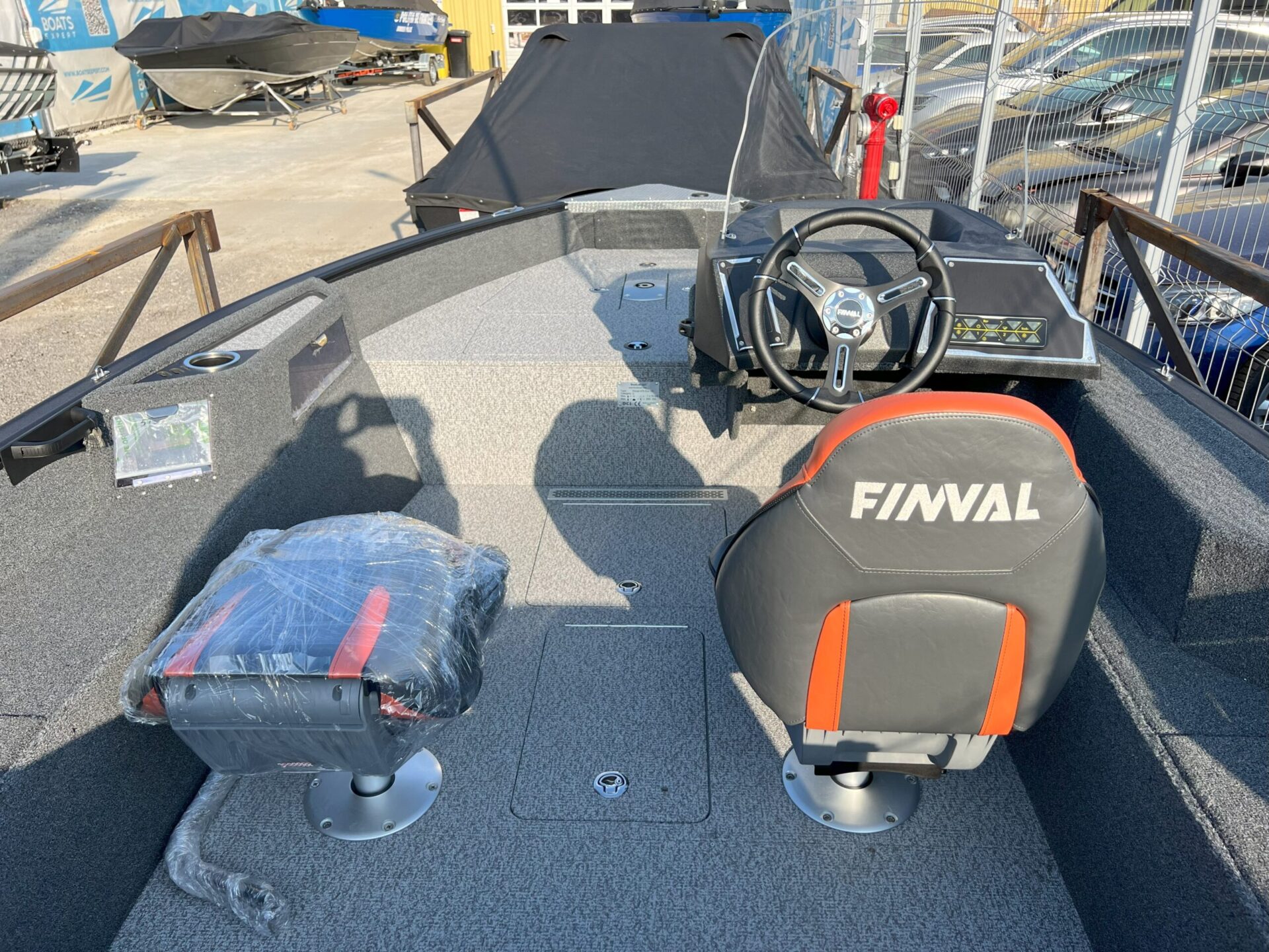 The Finval 475 Evo SC is a popular fishing boat with a spacious cockpit and wide aft deck. It features a functional driver’s console with anodized aluminum pads and the option to install two 12’’ echo sounders. A convenient glove box with a USB socket for charging phones is located next to the passenger seat. Suitable for both beginners and experienced anglers.