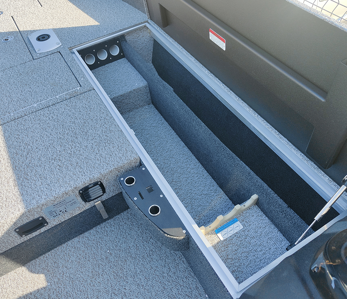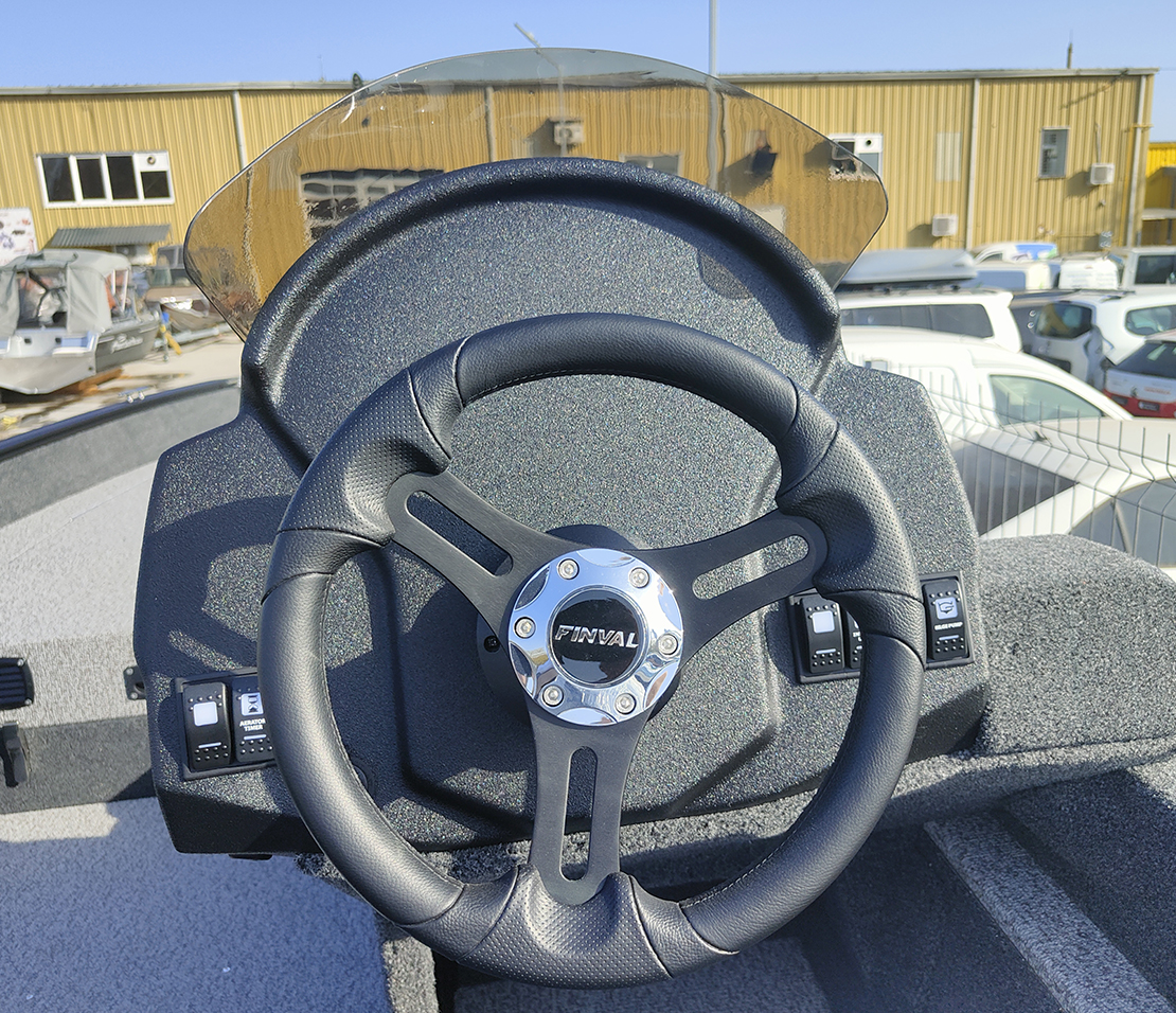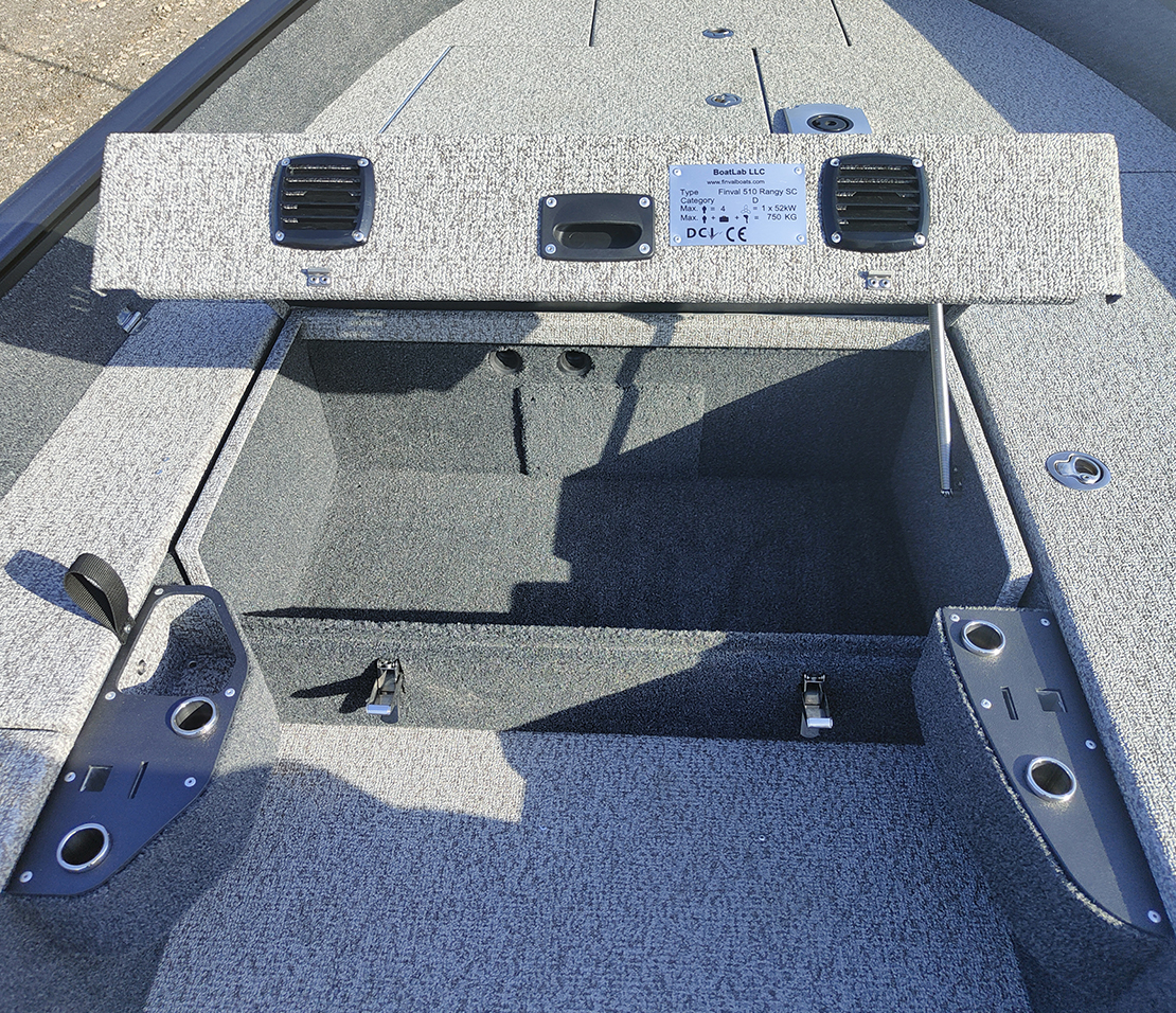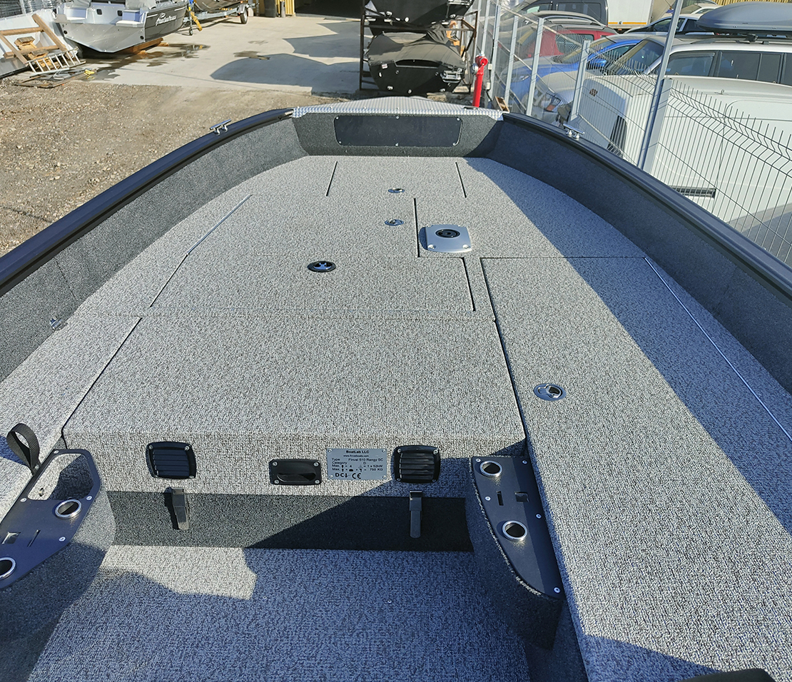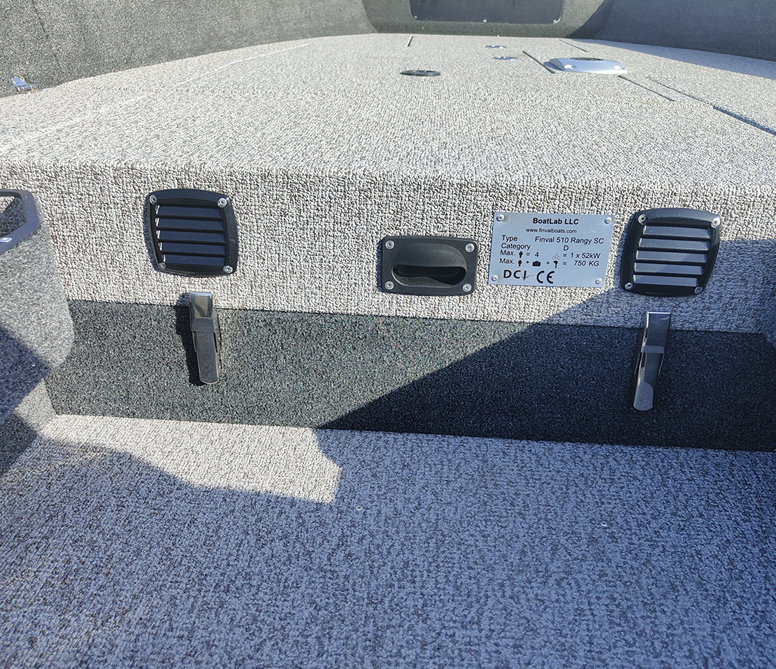 Finval 510 Rangy-SC is developed based on the tiller control model and maintained its basic advantages: plenty of free space and shallow draft. The low board does not create an obstacle in fishing, pulling up, and picking up the fish with your hands. At the same time, 510 Rangy-SC has excellent seaworthiness and allows one to feel safe on high waves. The console creates comfort for the driver and allows installing 2 echo sounders. Spacious lockers have high-quality stainless steel fittings, and two of them can be used for storing fishing rods. Decks and the cockpit is made of aluminum, which improves reliability and durability. 510 Rangy-SC can be ordered in either vinyl or carpet interior decoration.