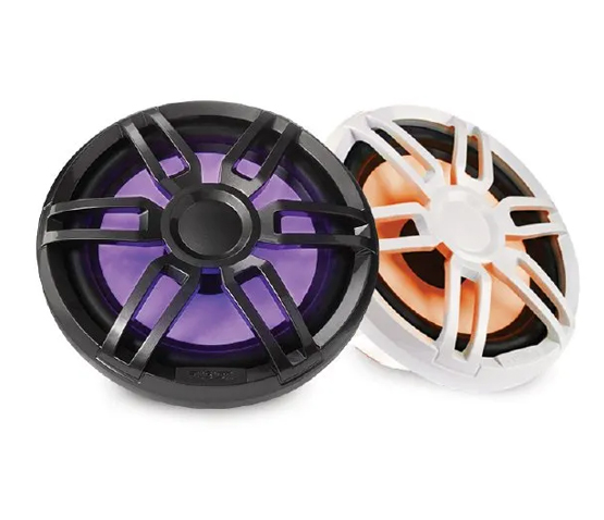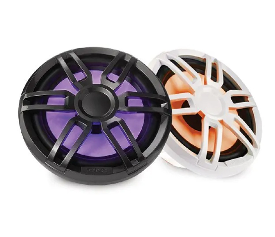 The XS Series sports style subwoofer with RGB LED lighting is available in a 10” size with interchangeable sports white/sports gray grilles and feature multicolor illumination options.