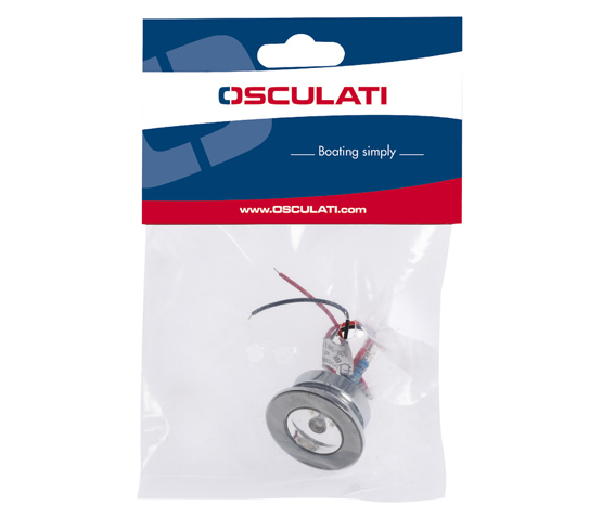 LED courtesy light round with white light in chrome-plated brass for pressure fitting with IP65 protection.