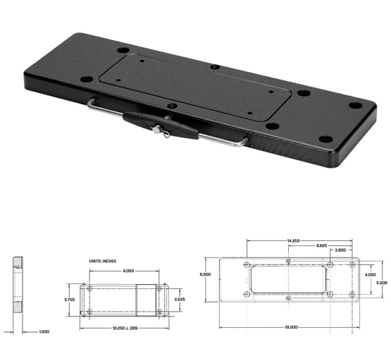 Easily remove your cable-steer, bow-mount trolling motor. High-yield composite construction is super strong and impervious to corrosion. Low-profile design leaves deck clear when motor is removed. Locking handle with stainless steel pins can be secured with padlock (padlock not included, sold separately).NOTE: Designed for motors no larger than 80lbs of thrust and 60” shaft length.