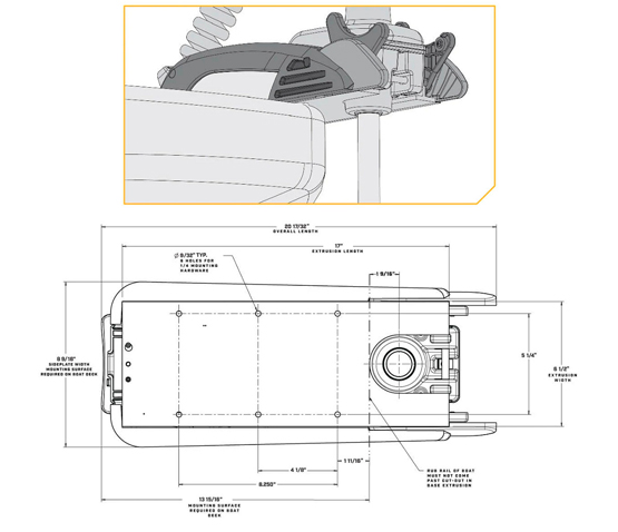 - Lift-Assist Design: A spring-loaded assembly on the Terrova mount makes stowing the trolling motor effortless, every time.