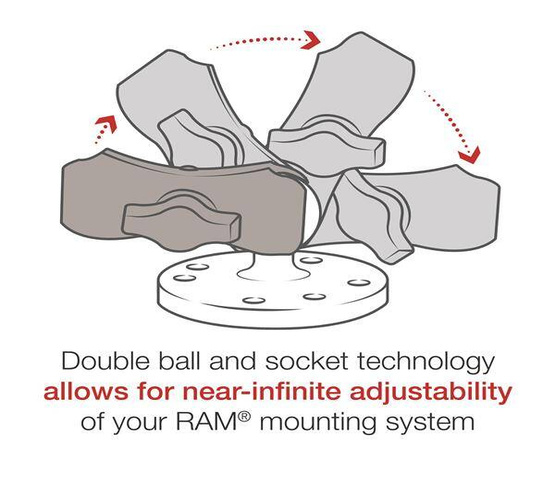 • Attaches to any B size RAM® ball component, including mounting bases and device holders; double ball and socket technology allows for near-infinite adjustability of your RAM® mounting system