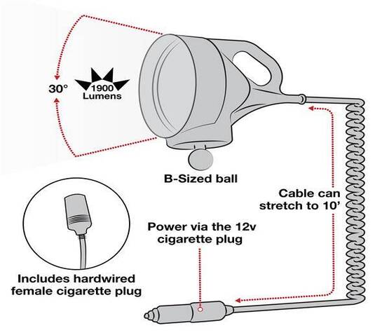 The new RAM Mounts LED Spotlight has been completely redesigned. We have integrated a new LED bulb that yields a brighter and more efficient light that enables you to add safety and lower power draw to your ATV, boat or vehicle. The weather-resistant body shields the 30-degree spot light LED bulb, which yields a wider and brighter range of light, from the elements. The long cord with standard 12v plugin means you can mount the light from nearly any location.