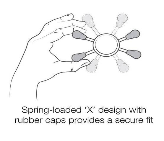 Spring-loaded ‘X’ design with rubber caps sports great holding power without hiding your phone; includes optional device tether for peace of mind during rugged use