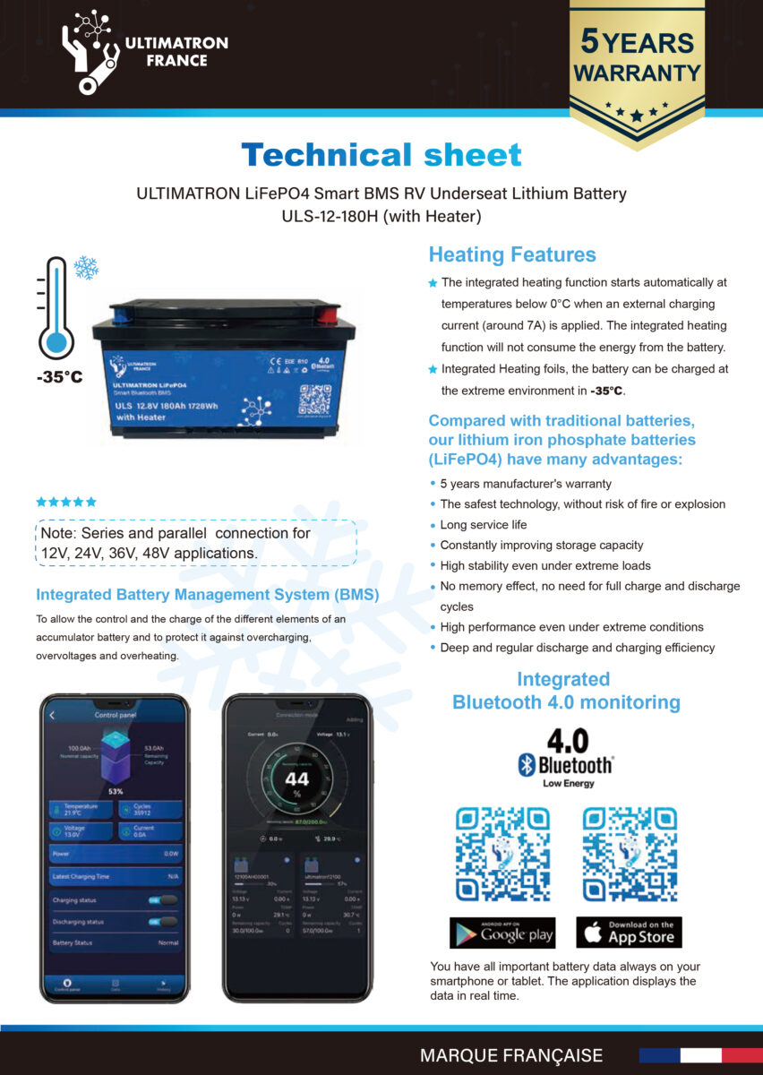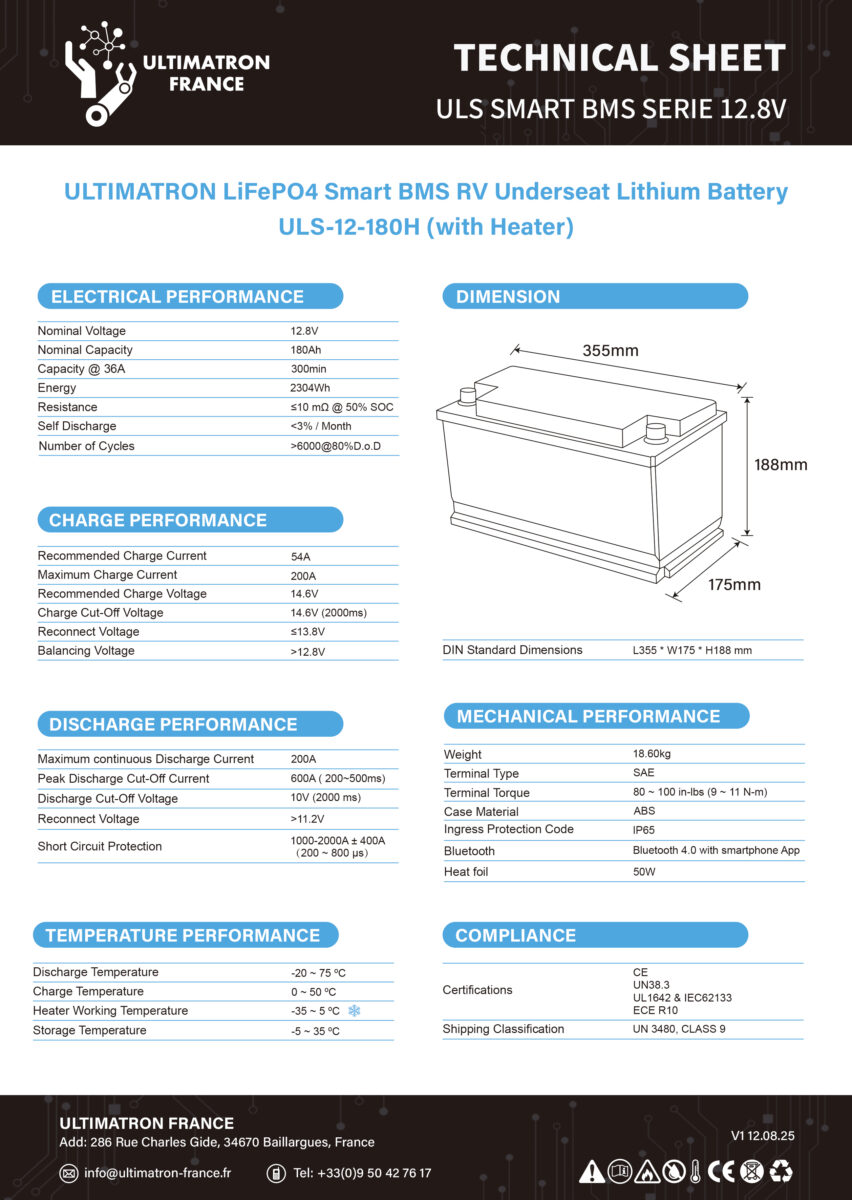 Be the first to review “Ultimatron LiFePO4 Lithium Battery 12.8V 180Ah with Bluetooth and heater” Cancel reply