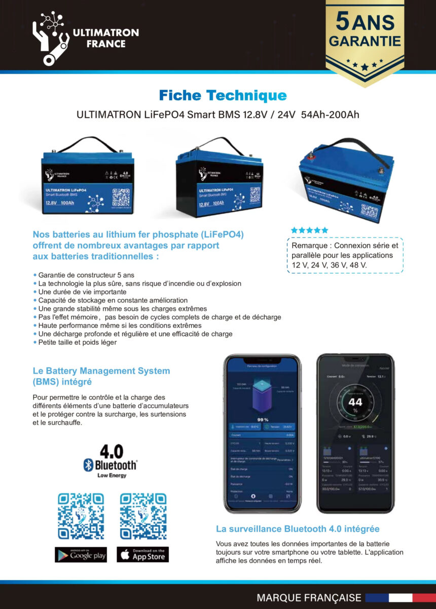 Ultimatron Lithium Battery 12.8V 150Ah LiFePO4 Smart BMS With Bluetooth